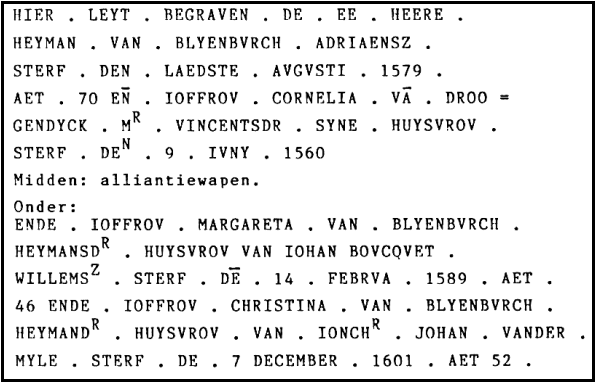 Bron: “Hier leyt begraven”, grafzerken in de Grote Kerk te Dordrecht door W. Nijman. In de Grote Kerk van Dordrecht bevind zich een zerk die behoorde bij het graf van Christina van Blijenburch Heijmansdr., de vrouw van Johan van der Mijle, ambachtsheer van St. A. Polder.